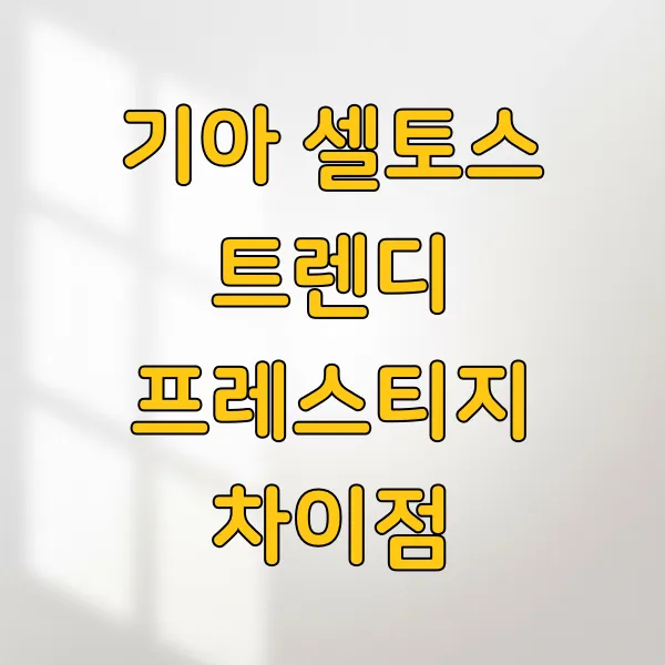 차를 구매할 때 가장 고민되는 순간 중 하나가 바로 트림 선택이잖아요. 특히 기아 셀토스는 '트렌디', '프레스티지', '시그니처' 등 다양한 트림으로 나뉘는데, 각 트림별로 뭐가 다른지 정확히 알기 어렵더라고요. 그래서 오늘은 셀토스에서 가장 많이 고민하시는 '트렌디'와 '프레스티지' 트림의 차이점에 집중해서, 어떤 점이 달라지고 어떤 옵션이 추가되는지 꼼꼼하게 알려드릴게요. 이걸 보면 내 차는 어떤 트림이 딱 맞을지 감이 좀 잡히실 거예요.